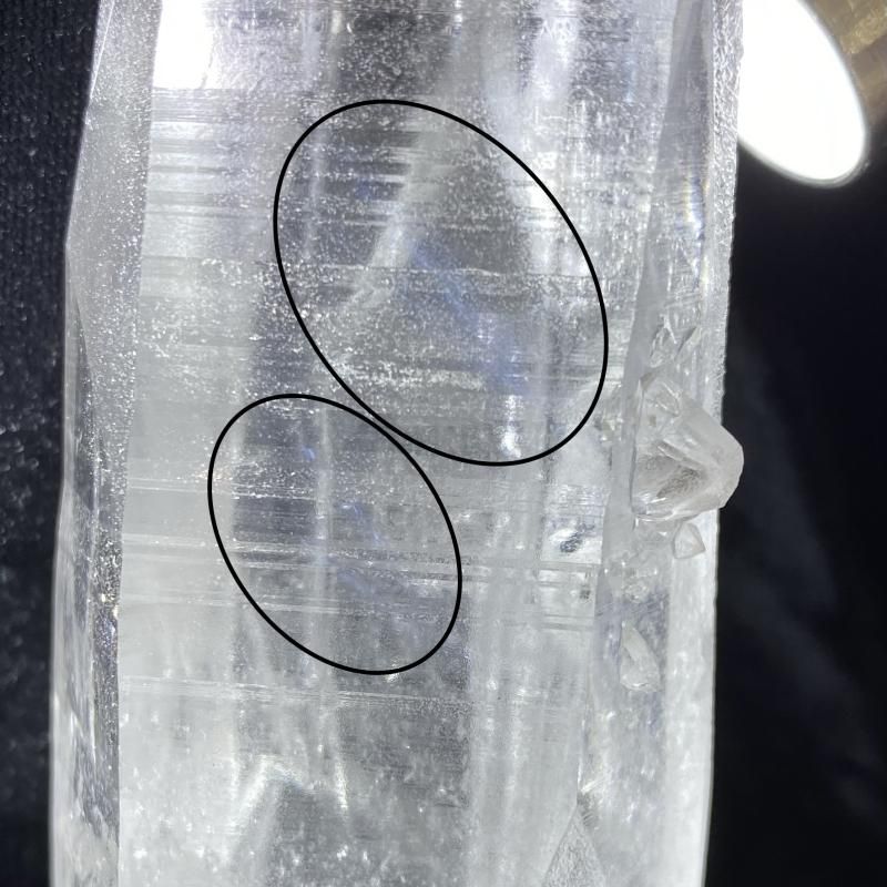 決まった方向からライトを当てると、エンジェルラダーと云われるブルーのラインが現れます(写真11枚目参照)。