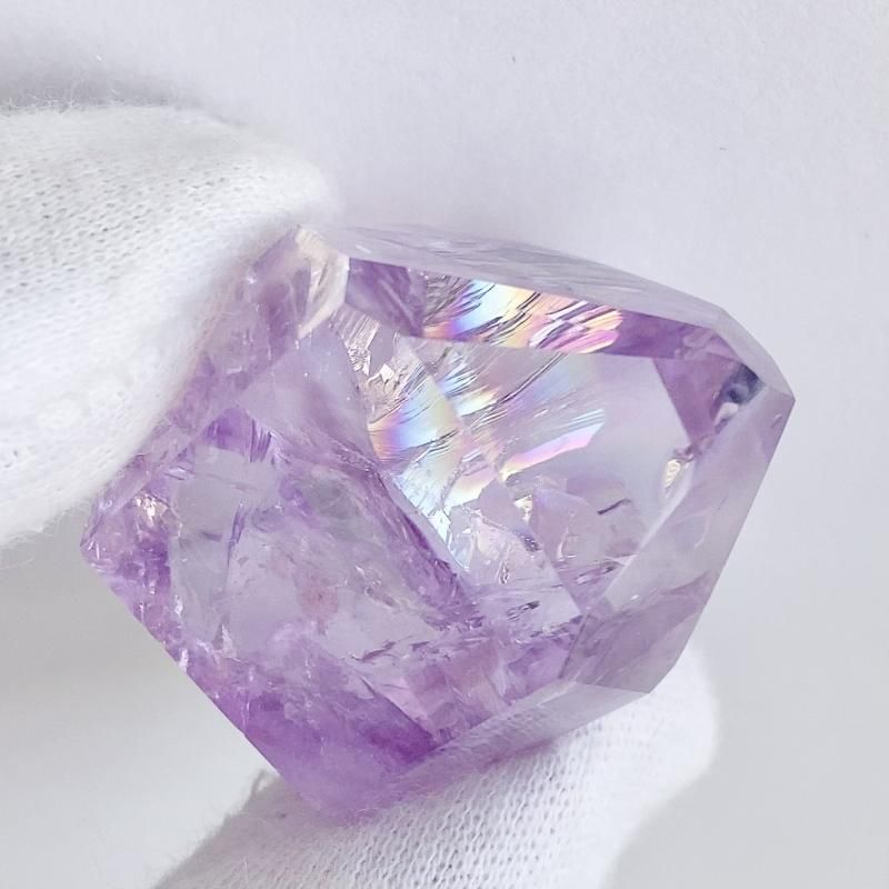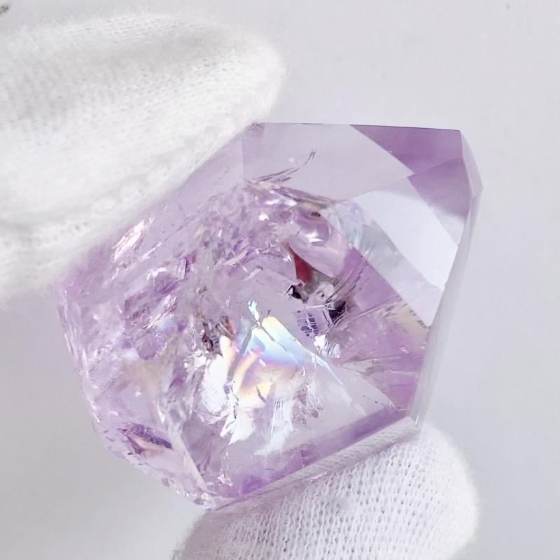淡いラベンダーカラーのアメジストに、控えめながらもキラキラとしたレインボーが浮かび上がるアメジストアイリスクォーツです。